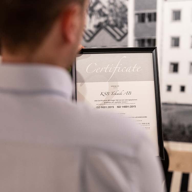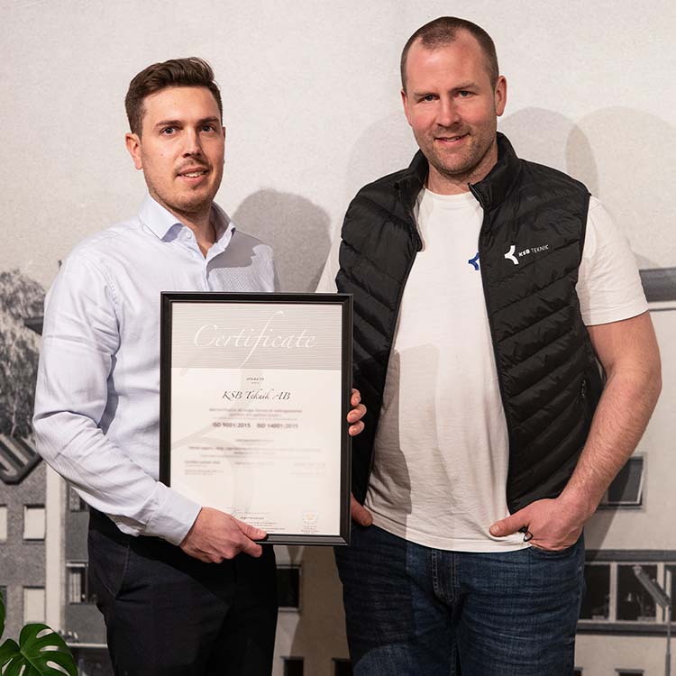 Vi är certifierade enligt ISO 9001, vilket innebär att vi arbetar strukturerat för att säkerställa hög kvalitet i våra processer och leveranser. Fokus ligger på ständiga förbättringar och att möta våra kunders behov på ett tillförlitligt sätt.